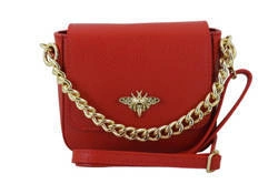 Skórzana listonoszka damska na ramię z odpinanym łańcuszkiem czerwona - Barberini's 945-13