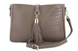 Skórzana listonoszka damska na ramię z frędzlem croco ciemnobeżowa - Barberini's 956-9