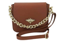 Skórzana mała torebka wizytowa na ramię z łańcuszkiem brązowa - Barberini's 949-12