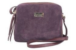 Skórzana mała listonoszka na ramię zamszowa bordowa - Barberini's 710-5