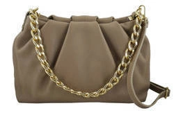 Skórzana torebka damska na ramię marszczona z łańcuszkiem beżowa - Barberini's 948-2