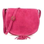 Skórzana mała listonoszka podkówka fuksja różowa zamszowa Vera Pelle B66