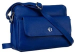 Skórzana listonoszka damska torebka z kieszonką niebieska - Rovicky R-TSL-10-CPDM