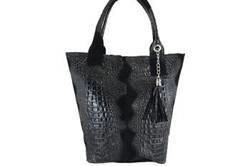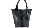 Skórzany shopper bag damski worek croco czarny - Barberini's 375/7-1