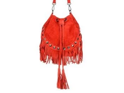 Skórzana torebka damska na ramię listonoszka z frędzlami czerwona - Vera Pelle X39