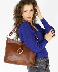 Skórzana torebka damska shopper bag worek brązowy - MARCO MAZZINI v201c