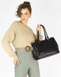 Skórzana torebka damska shopper bag czarny A4 - MARCO MAZZINI v234a