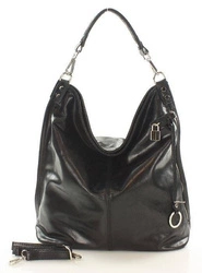 Skórzana torebka damska na ramię worek shopper bag czarny - MARCO MAZZINI s92a