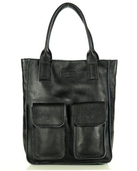 Skórzany shopper bag z kieszeniami damska torebka czarna - Marco Mazzini s131a