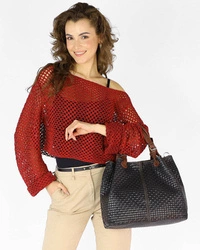 Skórzana torba damska pleciona shopper bag czarny - Marco Mazzini v186d