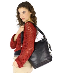 Skórzana torebka damska worek shopper bag czarny - MARCO MAZZINI v201a