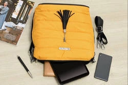 Torebka damska materiałowa na ramię pikowana miejska musztardowa W91