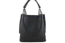 Skórzana shopperka damska na łańcuszku ciemno szara - Barberini's 810-28