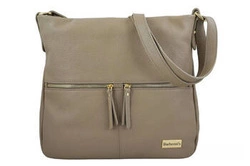 Skórzana torebka damska listonoszka ciemnobeżowa - Barberini's 979-9