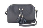 Skórzana listonoszka damska na ramię z frędzlem croco czarna - Barberini's 956-1