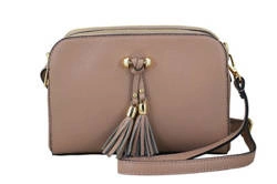 Skórzana listonoszka damska na ramię z frędzlem croco ciemnobeżowa - Barberini's 956-9