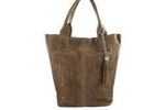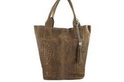 Skórzana damska shopperka worek skóra croco zamszowa beżowa - Barberini's 375/7-9