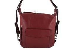 Skórzana damska torebka plecak miejski czerwony 2w1 - Barberini's 562-13