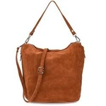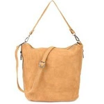 Skórzana torebka damska na ramię worek zamszowy koniak - Vera Pelle U35