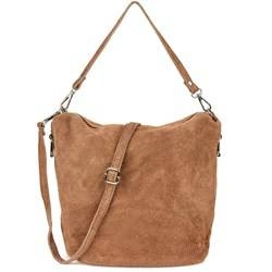 Skórzana torebka damska worek zamszowy ciemnobrązowy Vera Pelle U35