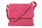 Skórzana listonoszka damska zamszowa z klapką fuksja różowa Vera Pelle X40