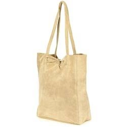 Skórzana damska torba shopper jasnobeżowa zamszowa Vera Pelle T49