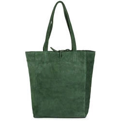 Skórzana damska torba shopper zamszowa zielona Vera Pelle T49