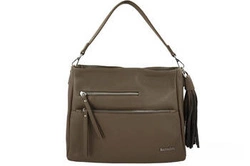 Skórzana torebka damska na ramię z frędzlem ciemnobeżowa - Barberini's 972-9