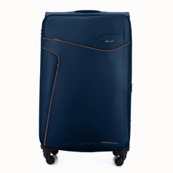 Duża walizka podróżna miękka granatowo-brązowa L - STL1651