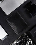 Skórzany portfel męski ze srebrnym akcentem, skóra czarna licowa Rovicky N993-RVTM-GN-6613 BL